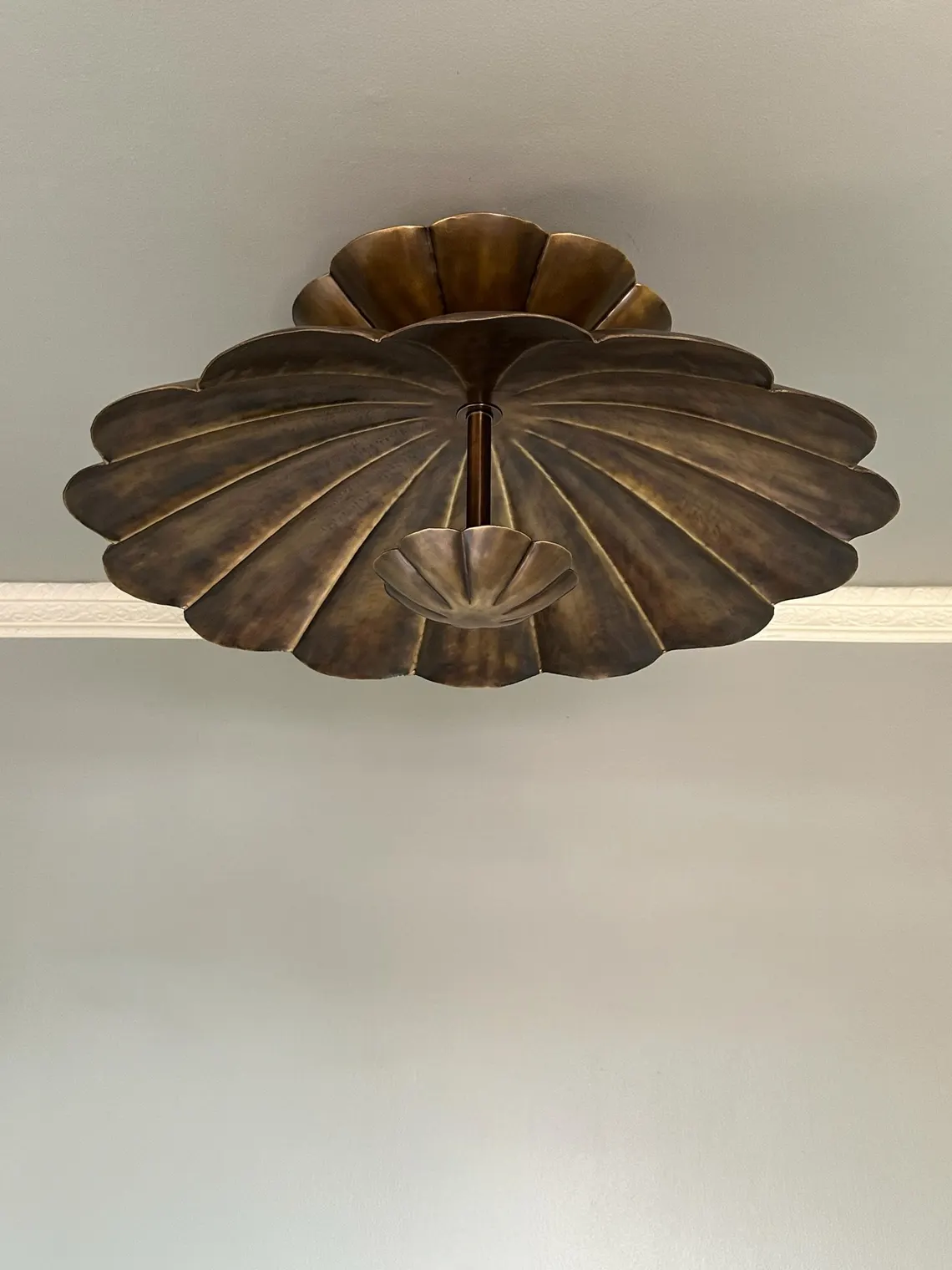 Be the first to review “Brass Flush Mount Ceiling Light | Antique Scalloped Fish Scale Style Fixture”