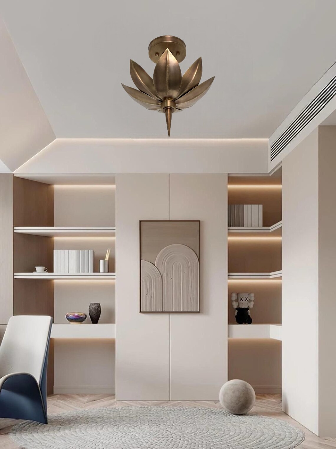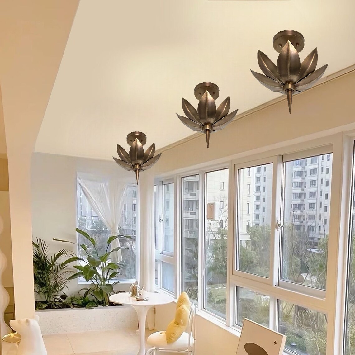 Brass Lotus Flush Mount Light Fixture: Antique Style Flower Lighting