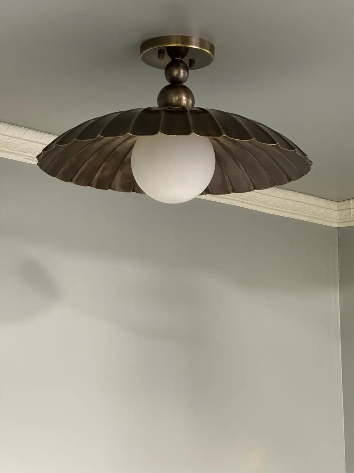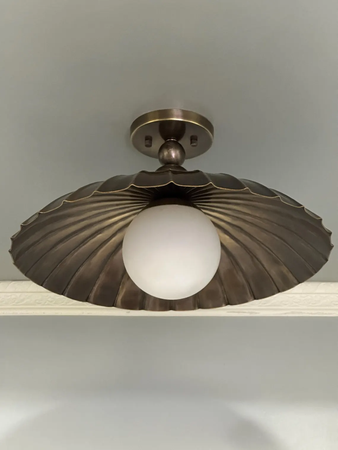 Elegant Brass Flush Mount Ceiling Light – Scalloped Dome Shade with Globe Bulb