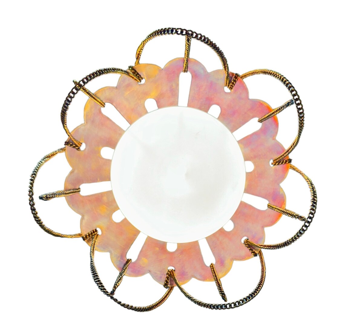 Handcrafted Flower Style Flush Mount Raw Brass, Milk Glass Shade