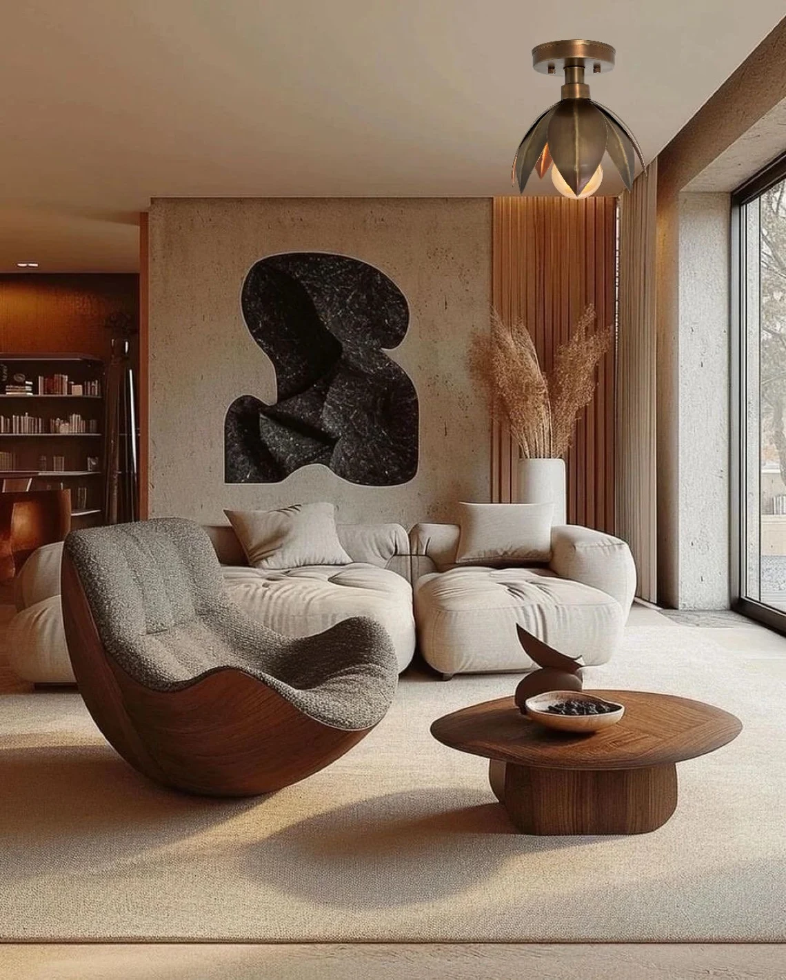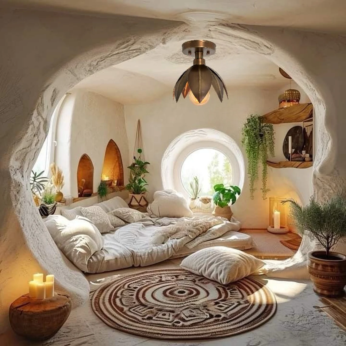 Transform your interior with our handmade lotus-style flush mount ceiling light. Explore our collection and find the perfect piece to enhance your home decor.