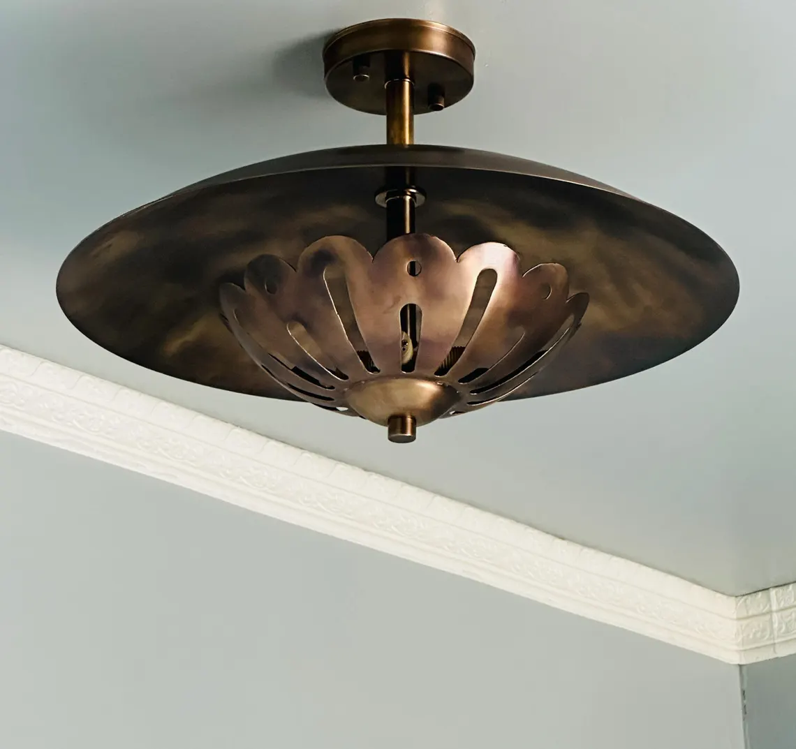 Handmade Brass Flush Mount Lamp: Antique Style Home Decor