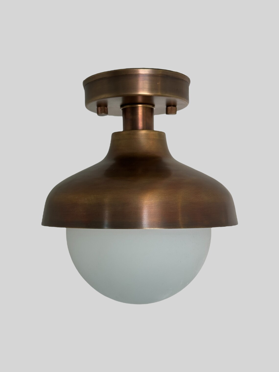 Handmade Brass Flush Mount with Antique Finish – Vintage Milk Glass Shade