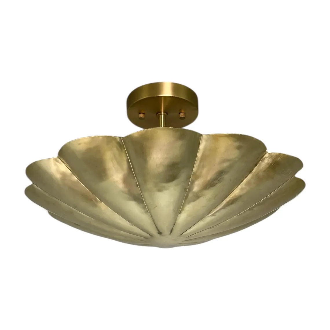 Handmade Brass Scalloped Flush Mount Ceiling Light – Mid-Century Modern Lighting