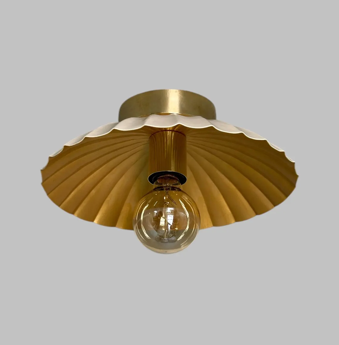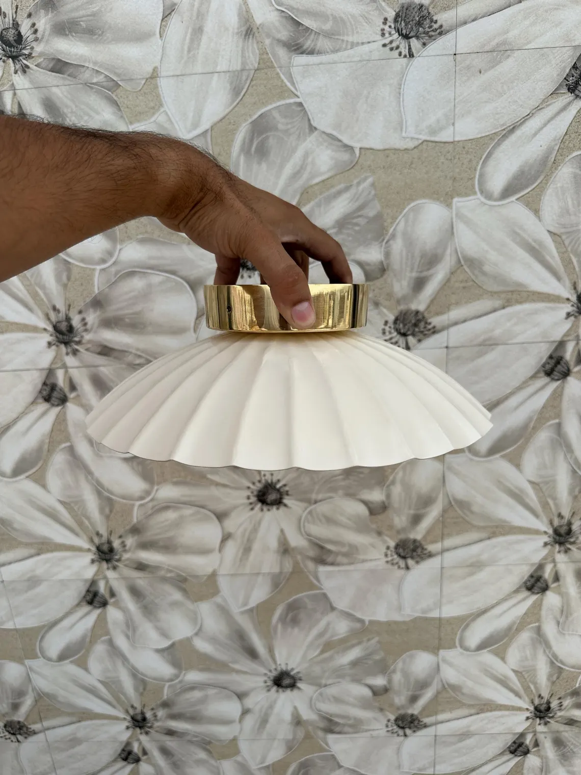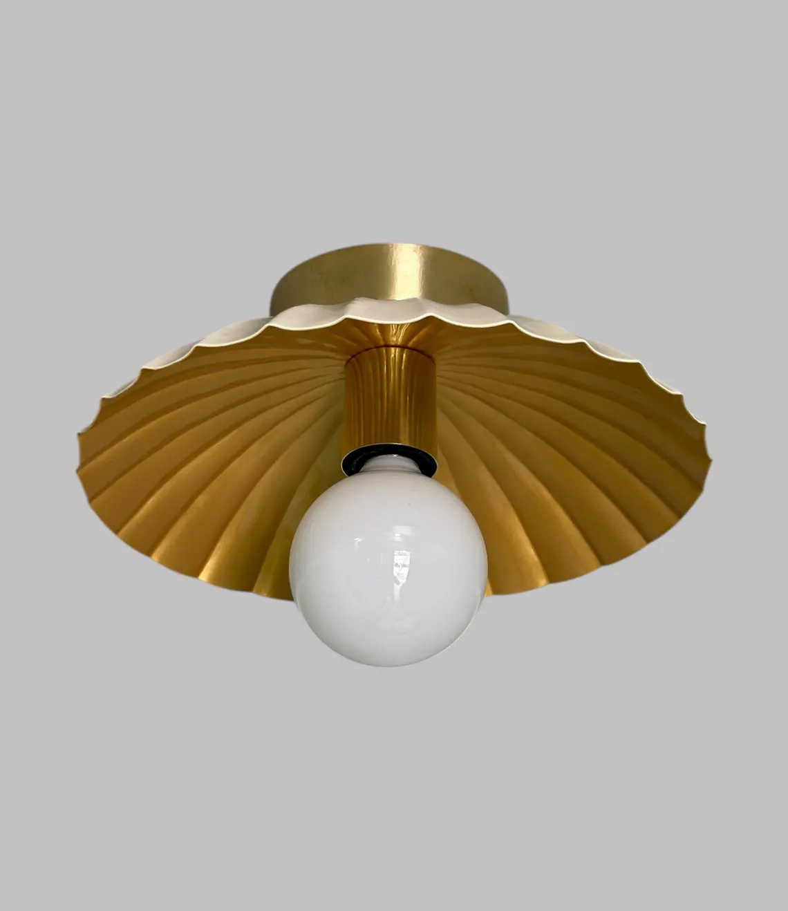Handmade Cream Metal Flush Mount Ceiling Light – Brass Accents, E26 Socket Lamp