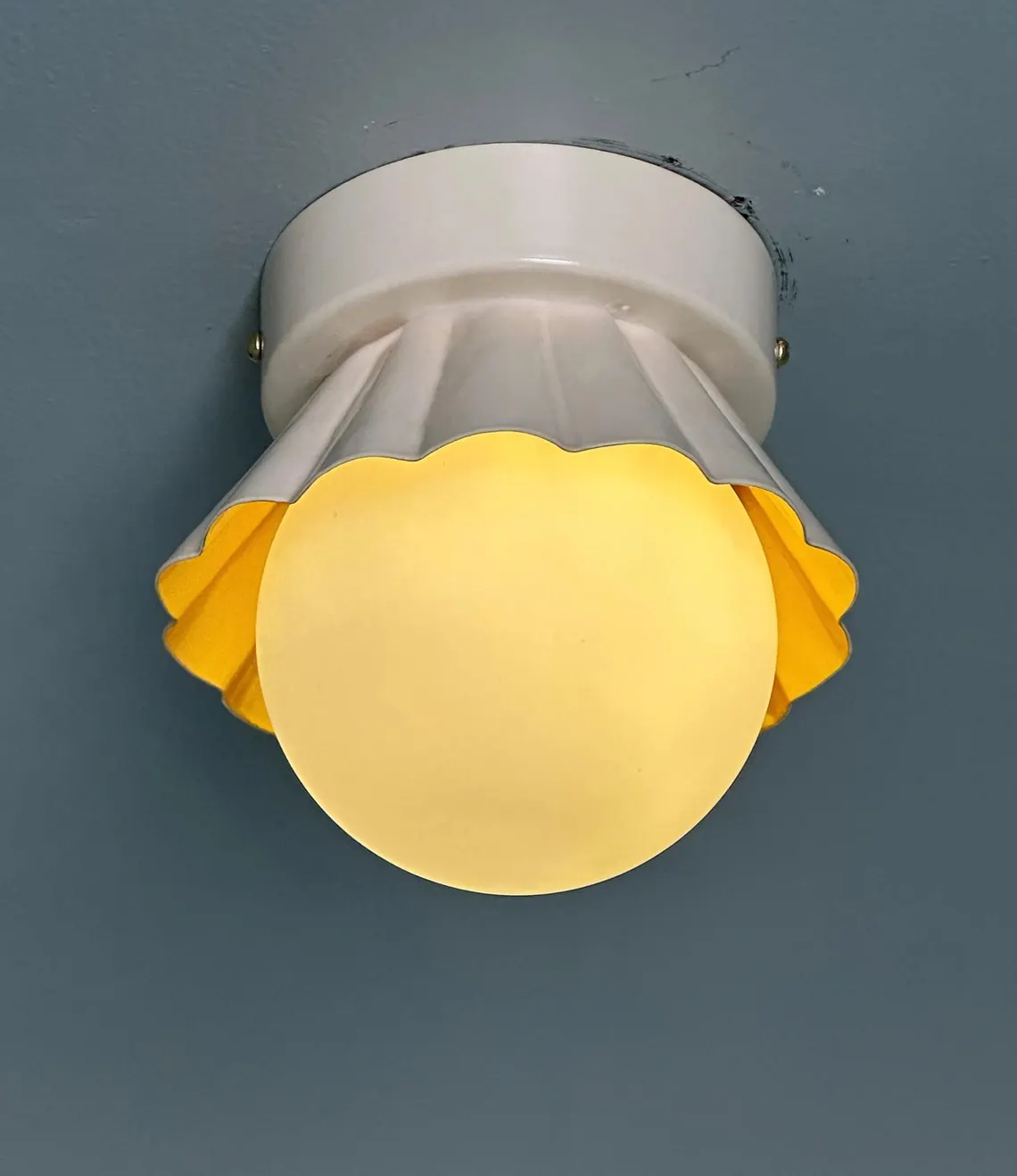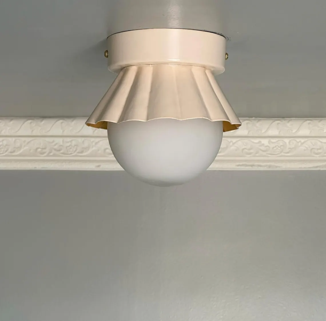 Handmade Milk Glass Flush Mount Lamp: Brushed Brass Vintage Style