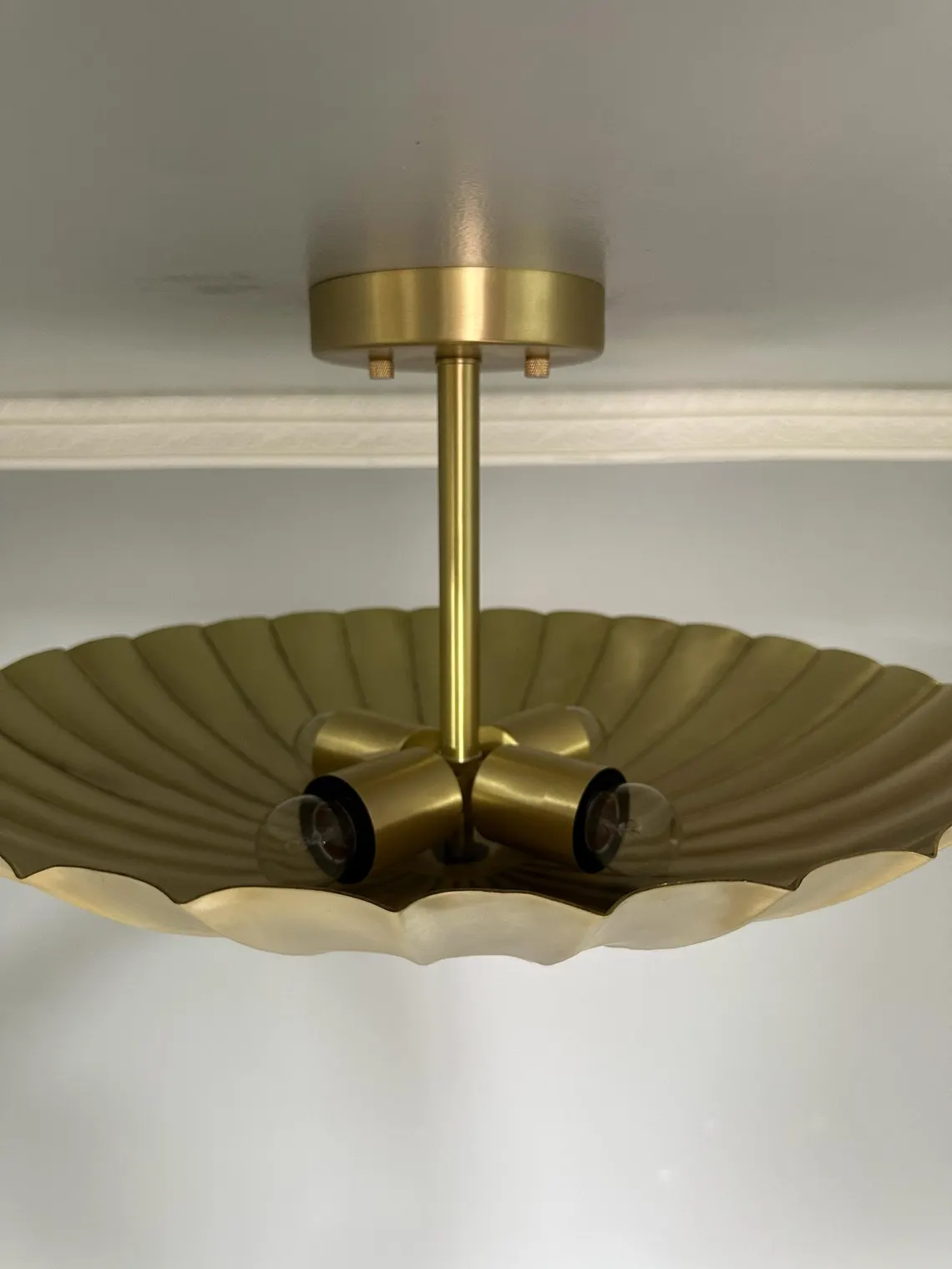 Handmade Scalloped Brass Flush Mount Ceiling Light – Modern Art Deco Lighting